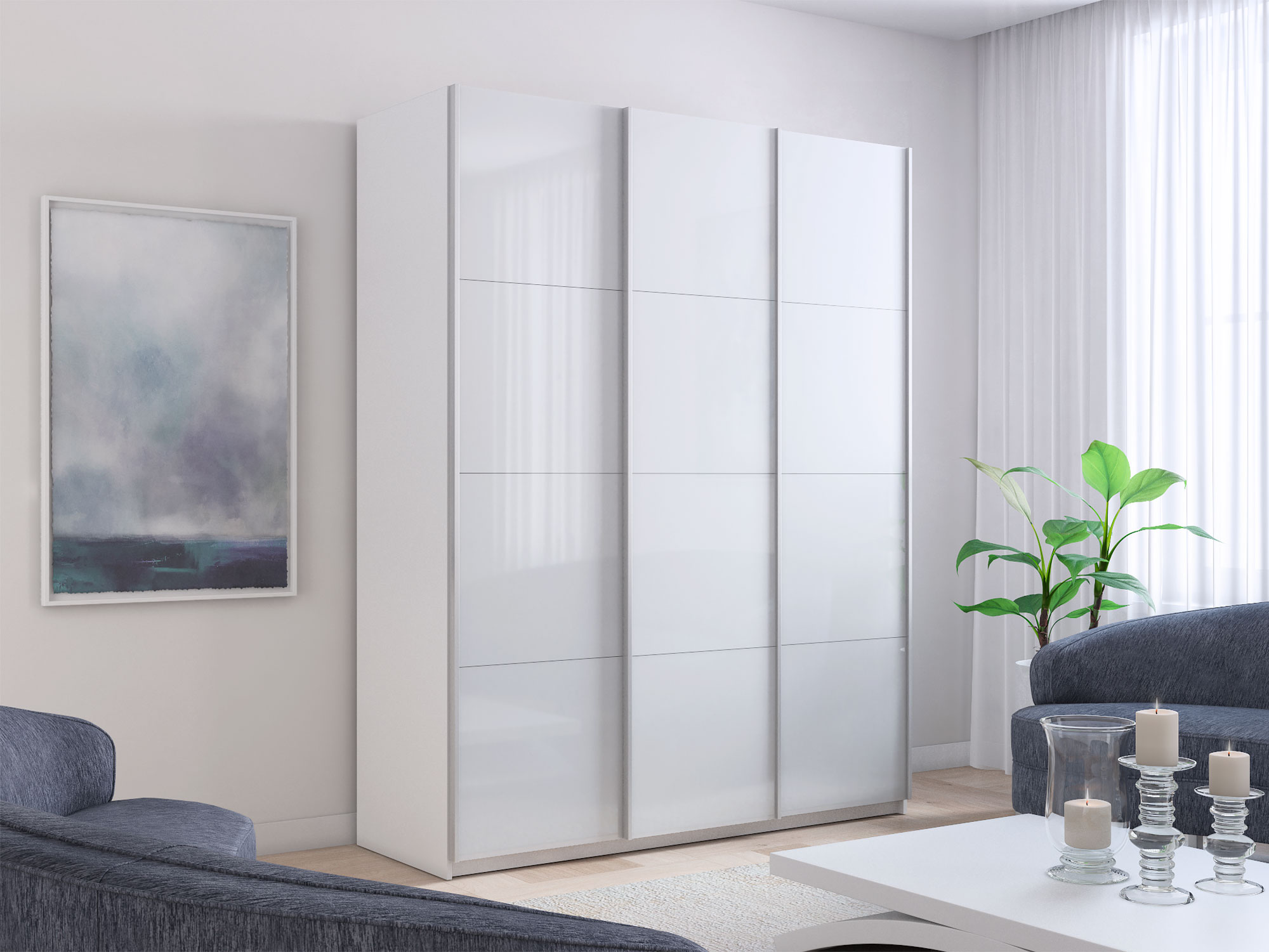 Материал фасада: 3 двери Стекло (белый)