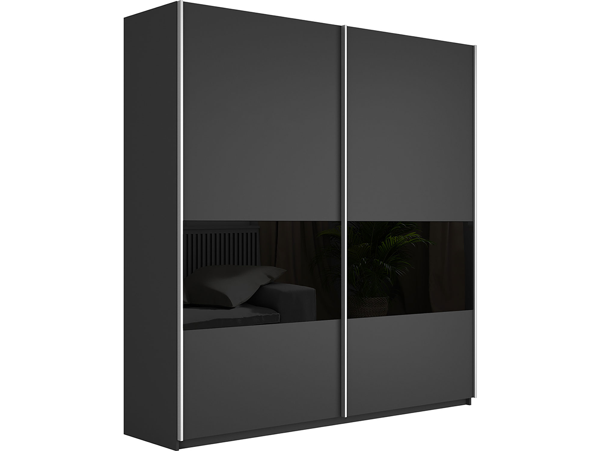 Шкаф-купе Прайм Широкий 2-х дверный ДСП/вставки Стекло Черное Серый Диамант