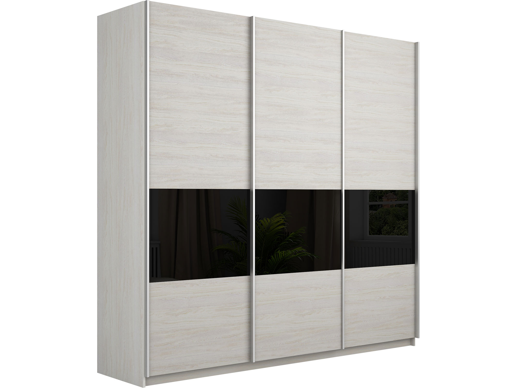 Шкаф-купе Прайм Широкий 3-х дверный ДСП/вставки Стекло Черное Ясень Анкор Светлый