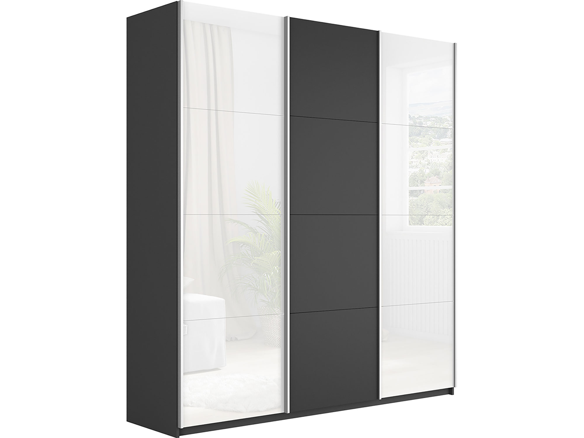 - Шкаф-купе Прайм Широкий 3-х дверный два белых стекла/ДСП Серый Диамант