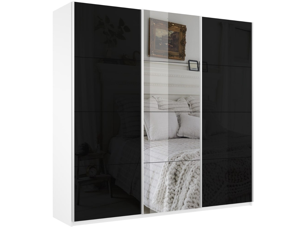 Шкаф-купе Прайм Широкий 3-х дверный два черных стекла/зеркало Белый Снег