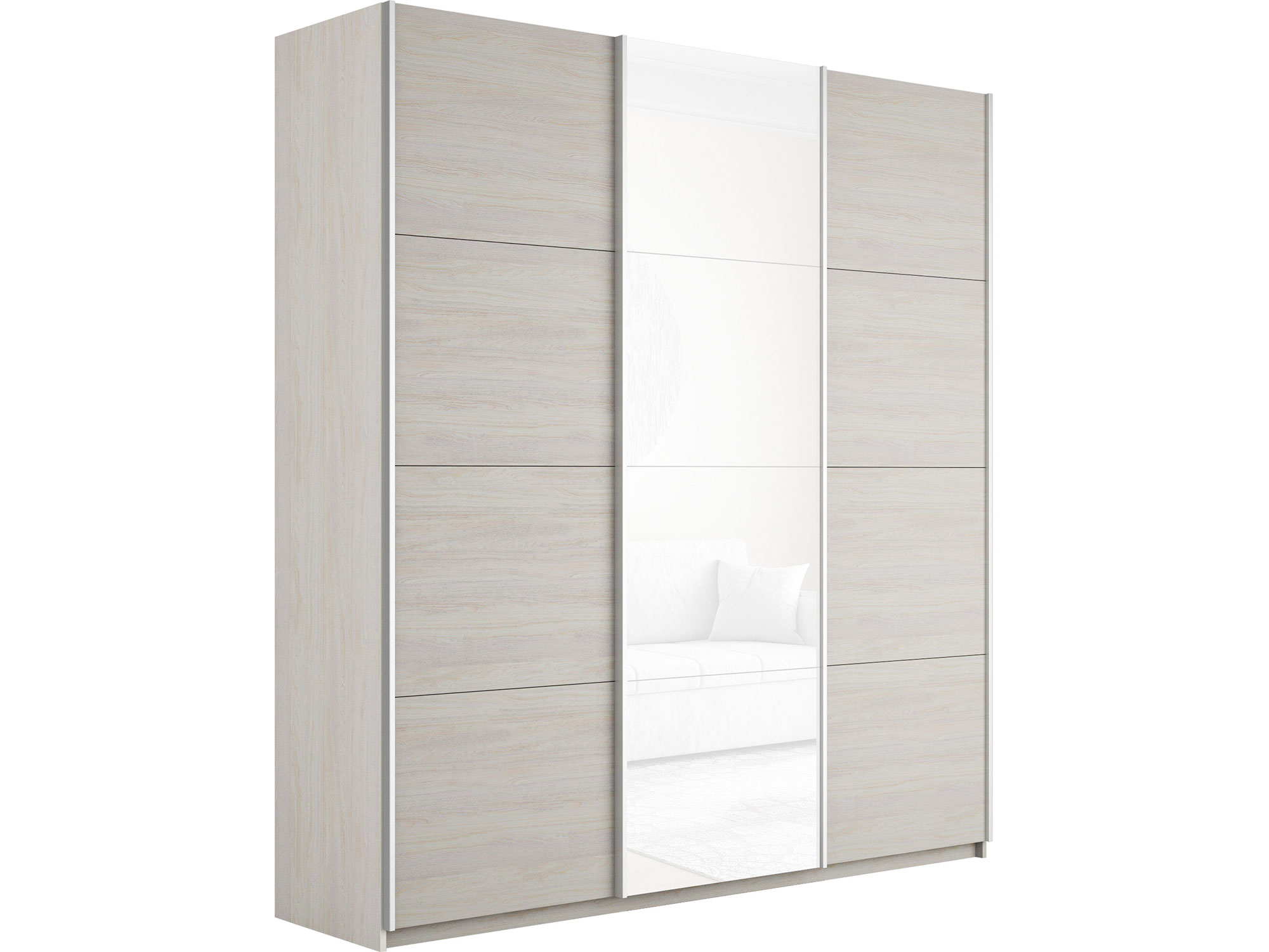 - Шкаф-купе Прайм Широкий 3-х дверный два ДСП/Стекло Белое Ясень Анкор Светлый