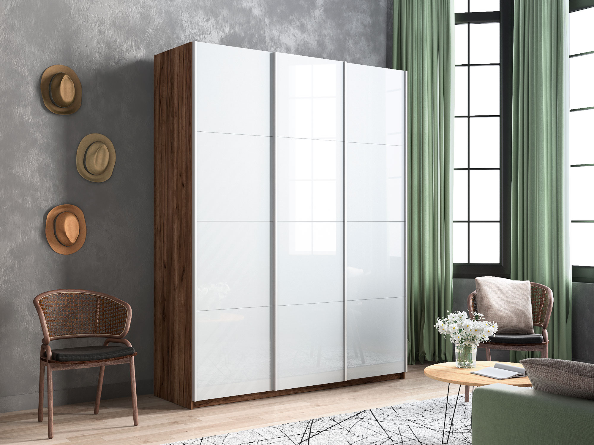 - Усиленная навесная система дверей помогает ходовому профилю выдерживать высокие нагрузки, а также сохраняет полезную площадь внутри шкафа, благодаря установке снаружи корпуса