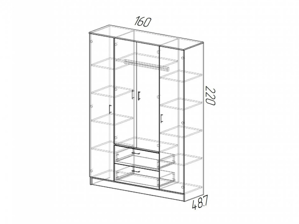 Размер: 1600(Ш) Х 2200(В) Х 487(Г) мм