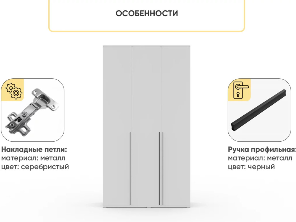 - Шкаф Монблан распашной 1200 3-х дверный (ножки) Белый