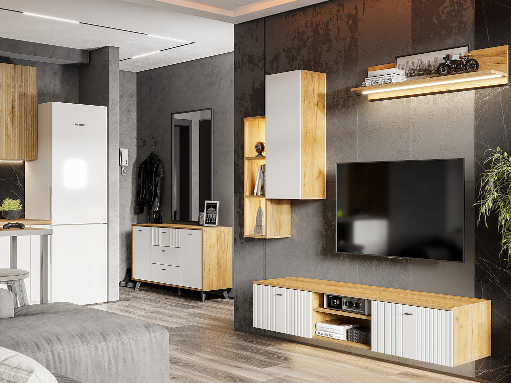 Цвет: Дуб Золотой/Белый Матовый