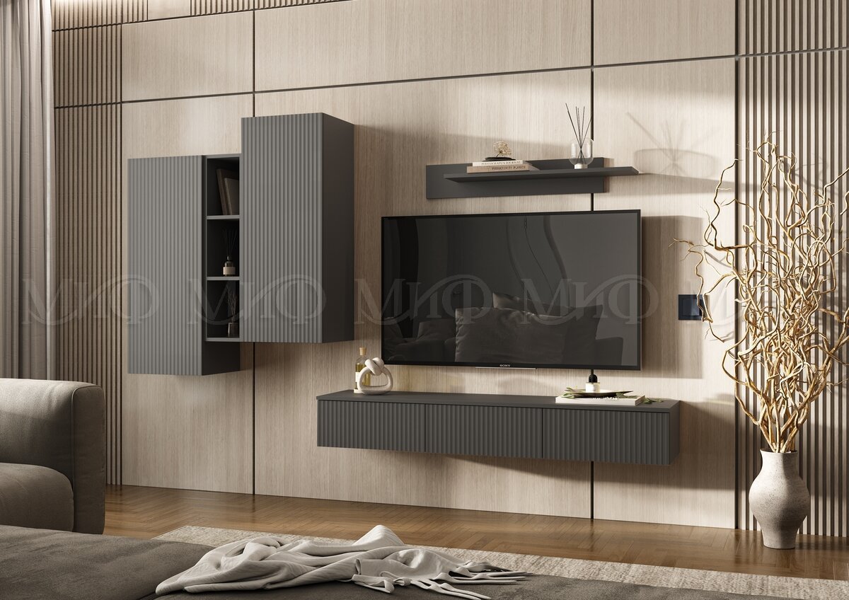 - Шкаф подвесной комбинированный Оскар Графит Софт