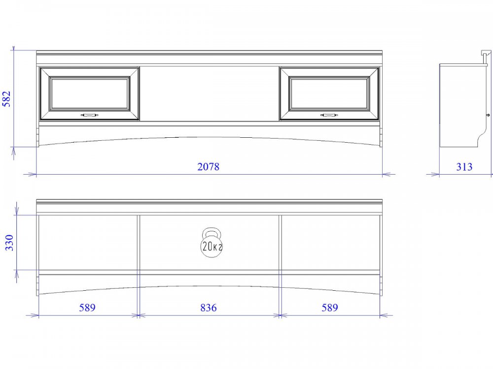 Размер ШхГхВ: 2078*313*582 мм
