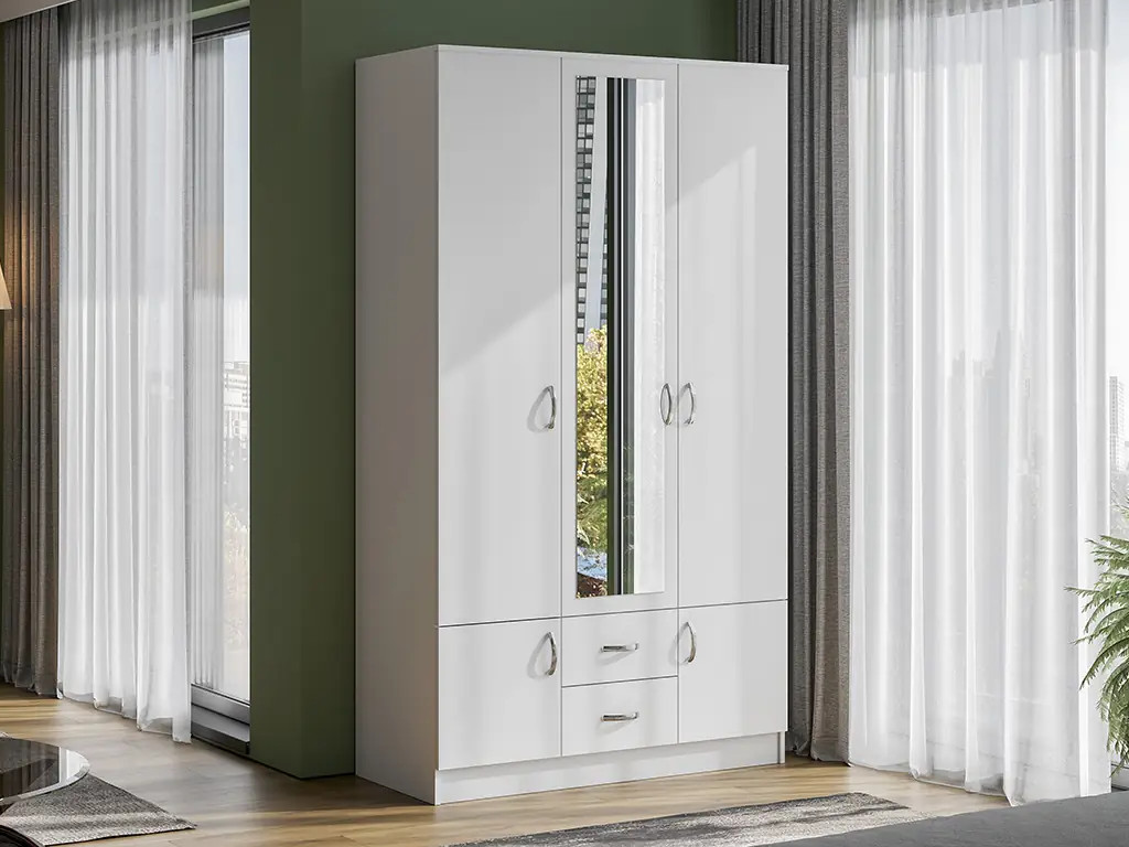 Шкаф Ронда ШК-3 с зеркалом белое дерево