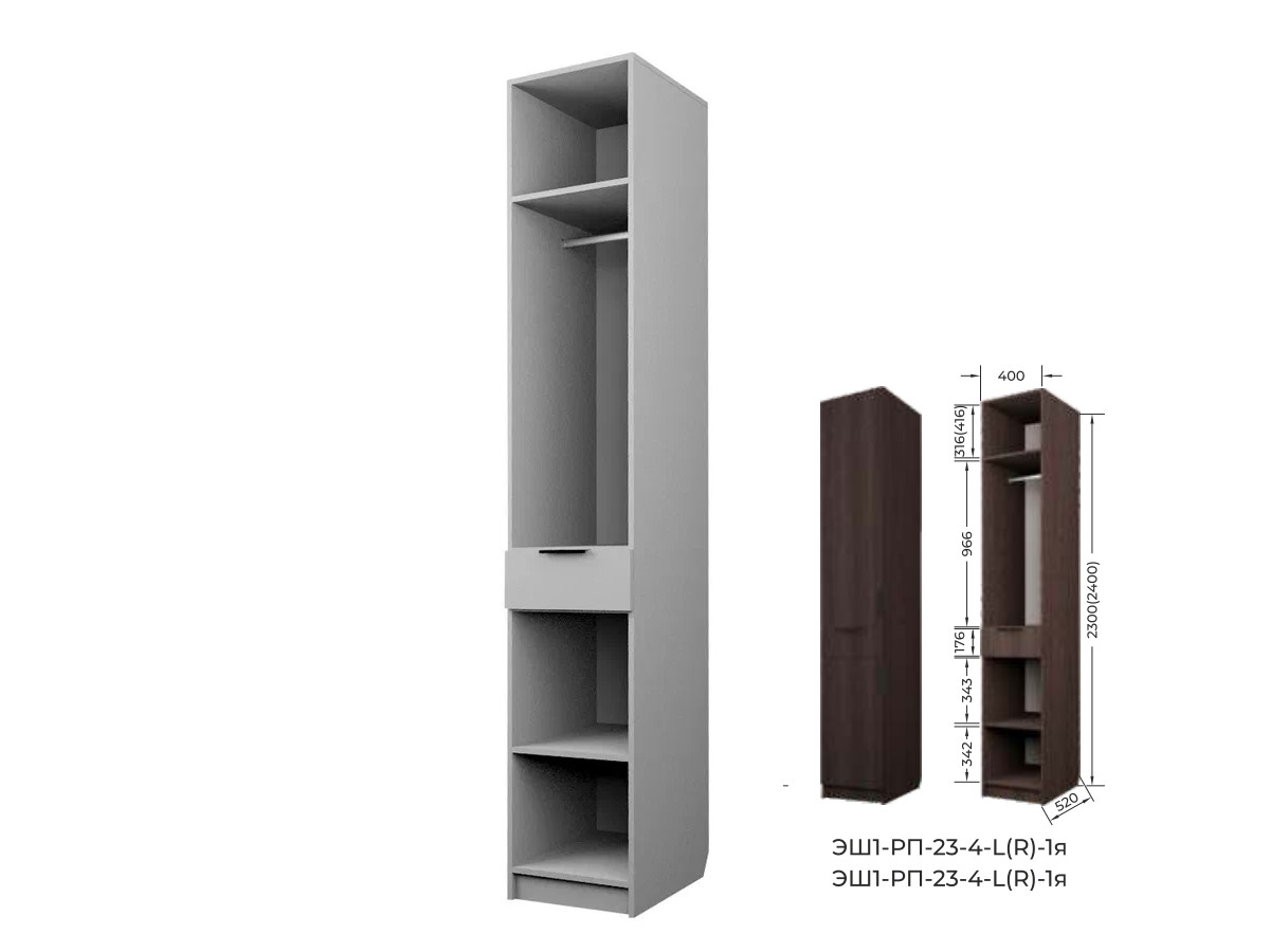 Комплект: ЭШ1-РП-23-4-R-1я,Шкаф с 1 ящиком + ЗС-23-1я,Зеркало для шкафов ЭШ 2300 мм