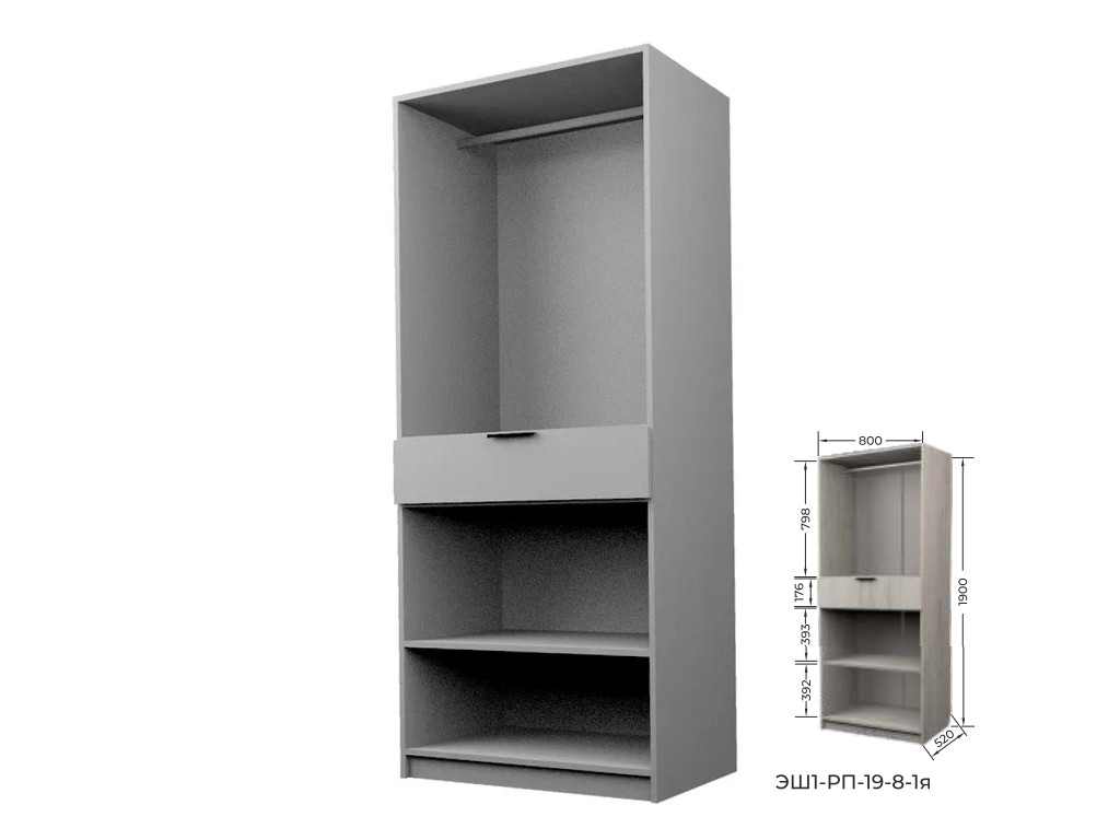 - Шкаф с 1 ящиком со штангой Экон ЭШ1-РП-19-8-1я с зеркалами