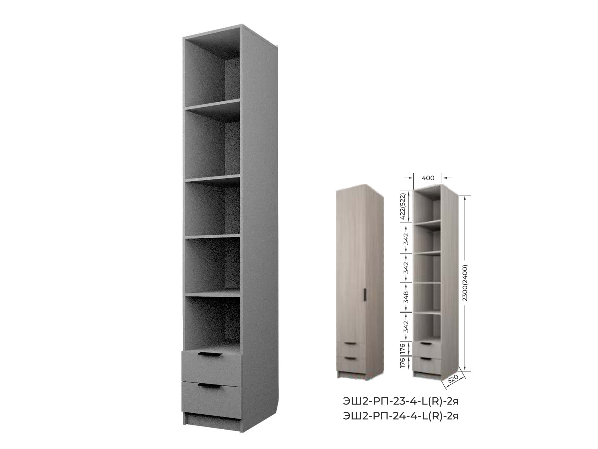 Комплект:ЭШ2-РП-24-4-R-2я,Шкаф с 2 ящиками + ЗС-24-2я,Зеркало для шкафов ЭШ 2400 мм