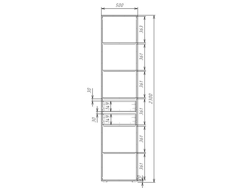 - Шкаф с полками и 2 ящиками Гранд ГШС/1-23-5-3-R-2я