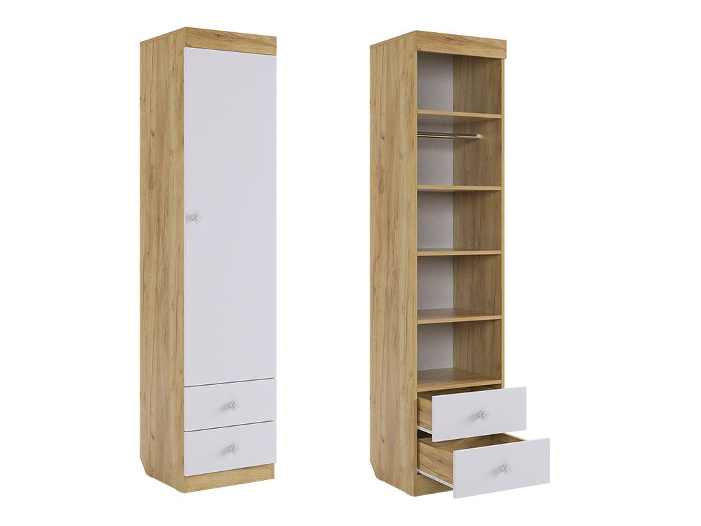 - Шкаф с ящиками одностворчатый Форсаж дуб крафт золотой/белый