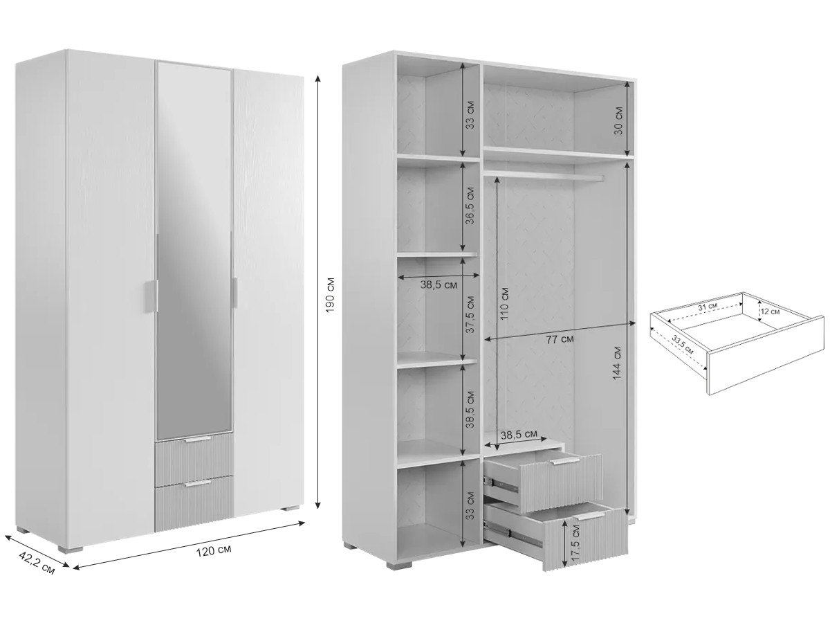 - Шкаф трехдверный 109.02 Зефир белый