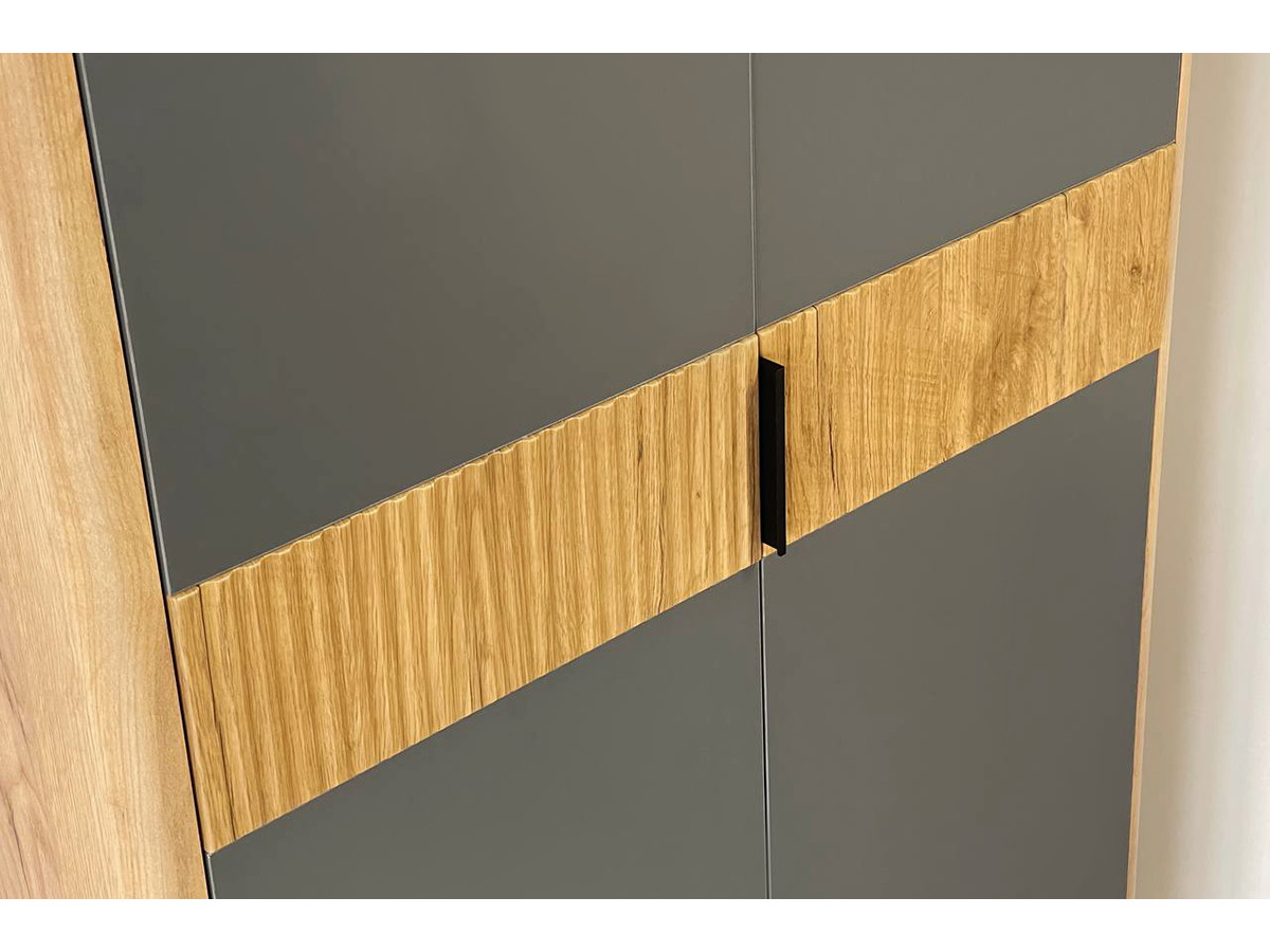 - Шкаф трехдверный с зеркалом Адам дуб крафт золотой/графит