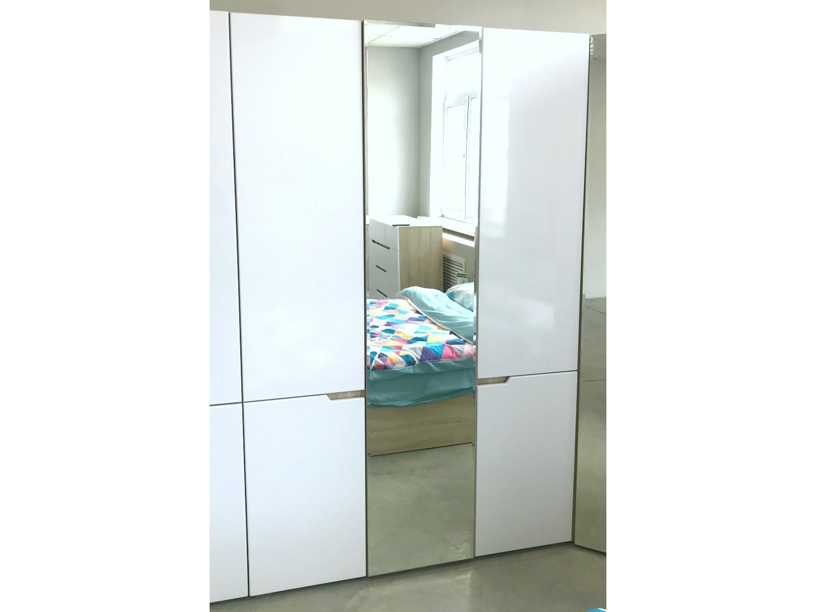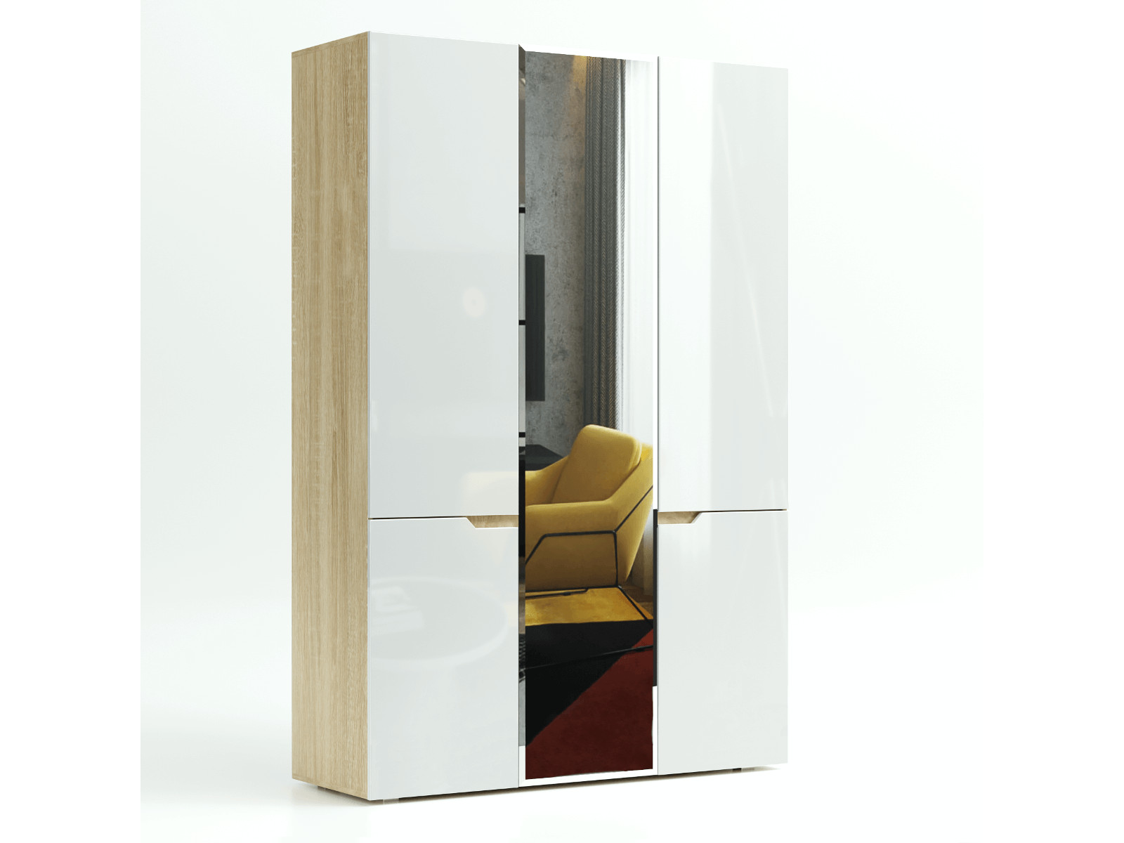 - Шкаф трехстворчатый Трио Белый глянец
