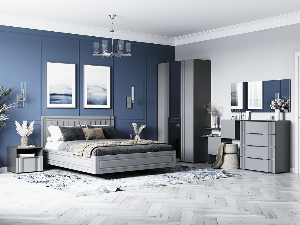 - Шкаф Вита 3-створки с зеркалом тёмно серый лофт