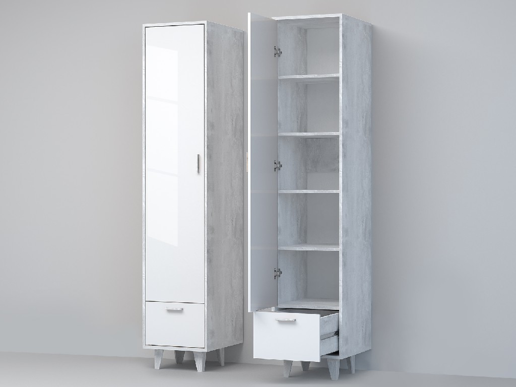 - Пенал Эго П-1 бетон светлый/белый глянец на ножках