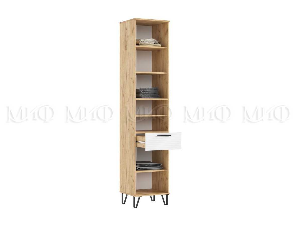 - Пенал открытый в прихожую Флэш Браш Вайт, Дуб Крафт