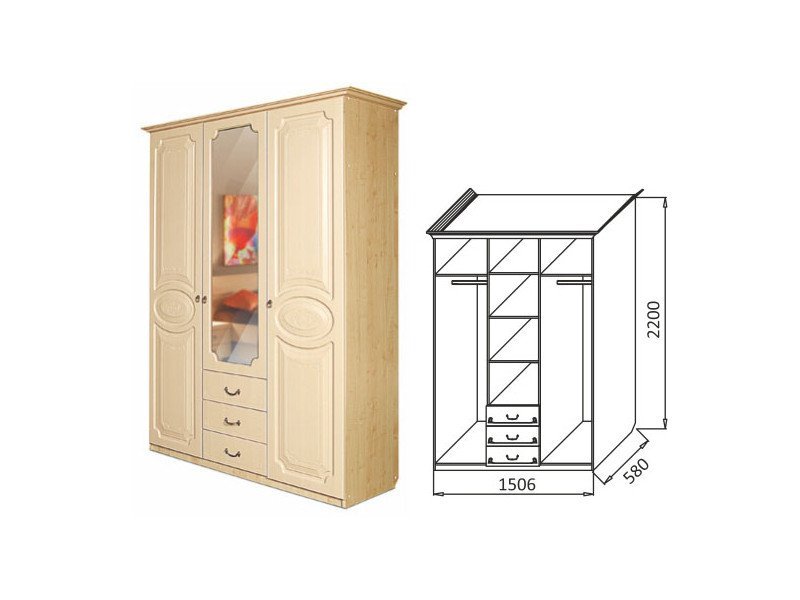 - Шкаф 3-х створчатый с ящиками МДФ Ивушка-5