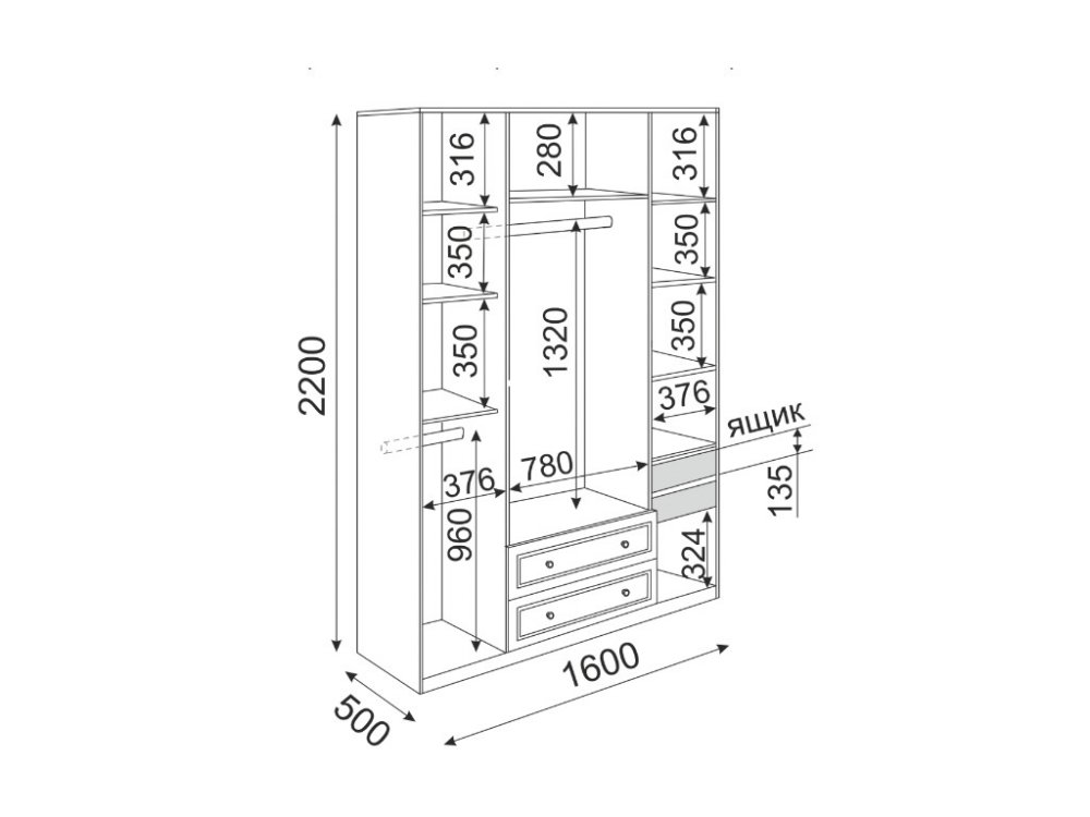 Размеры (ШхГхВ): 1600x500x2200 мм