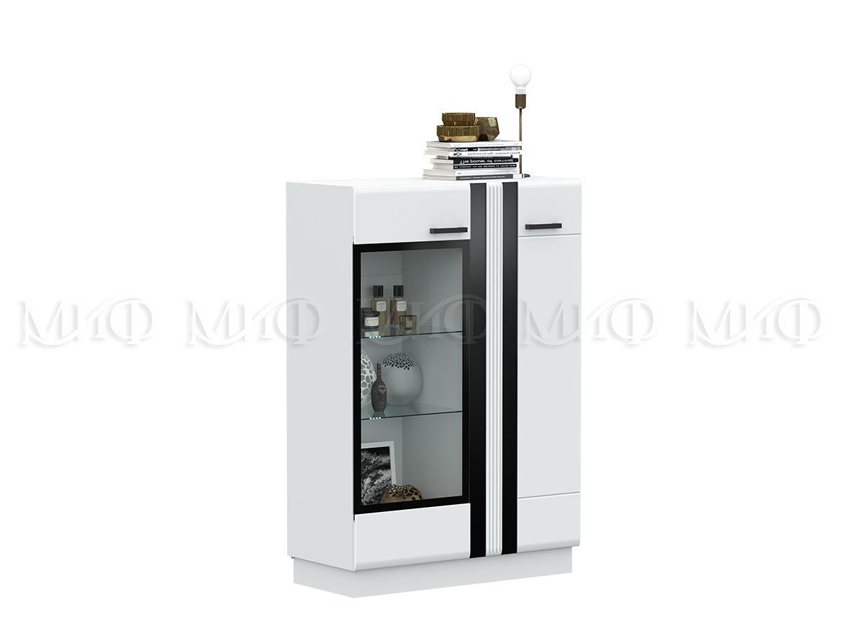Шкаф-стекло низкий Магнолия белый