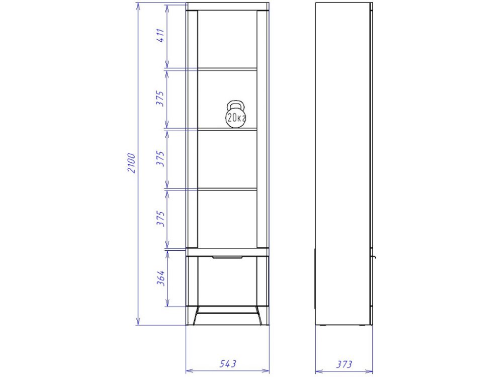 Размер ШхГхВ: 543*397*2100 мм